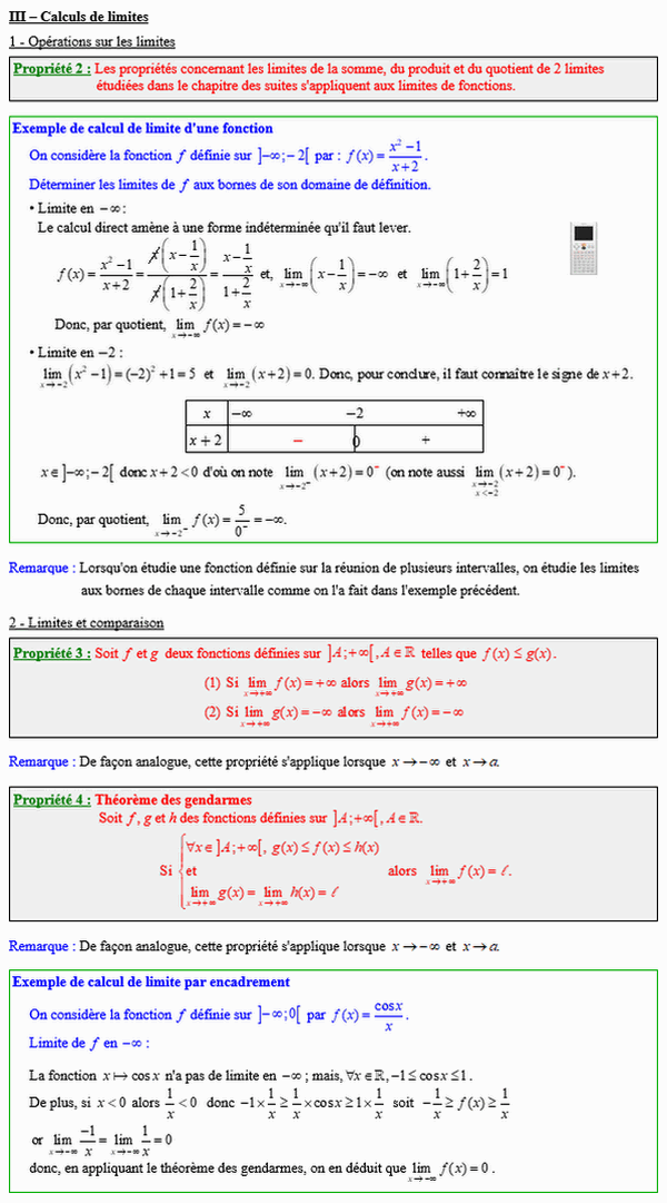 maths complémentaires terminale - Calcul des limites d'une fonction