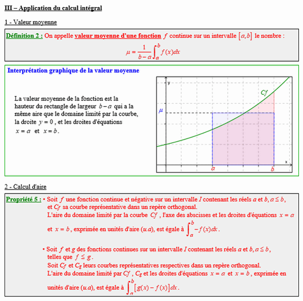 maths complémentaires terminale - Valeur moyenne et calcul d'aire